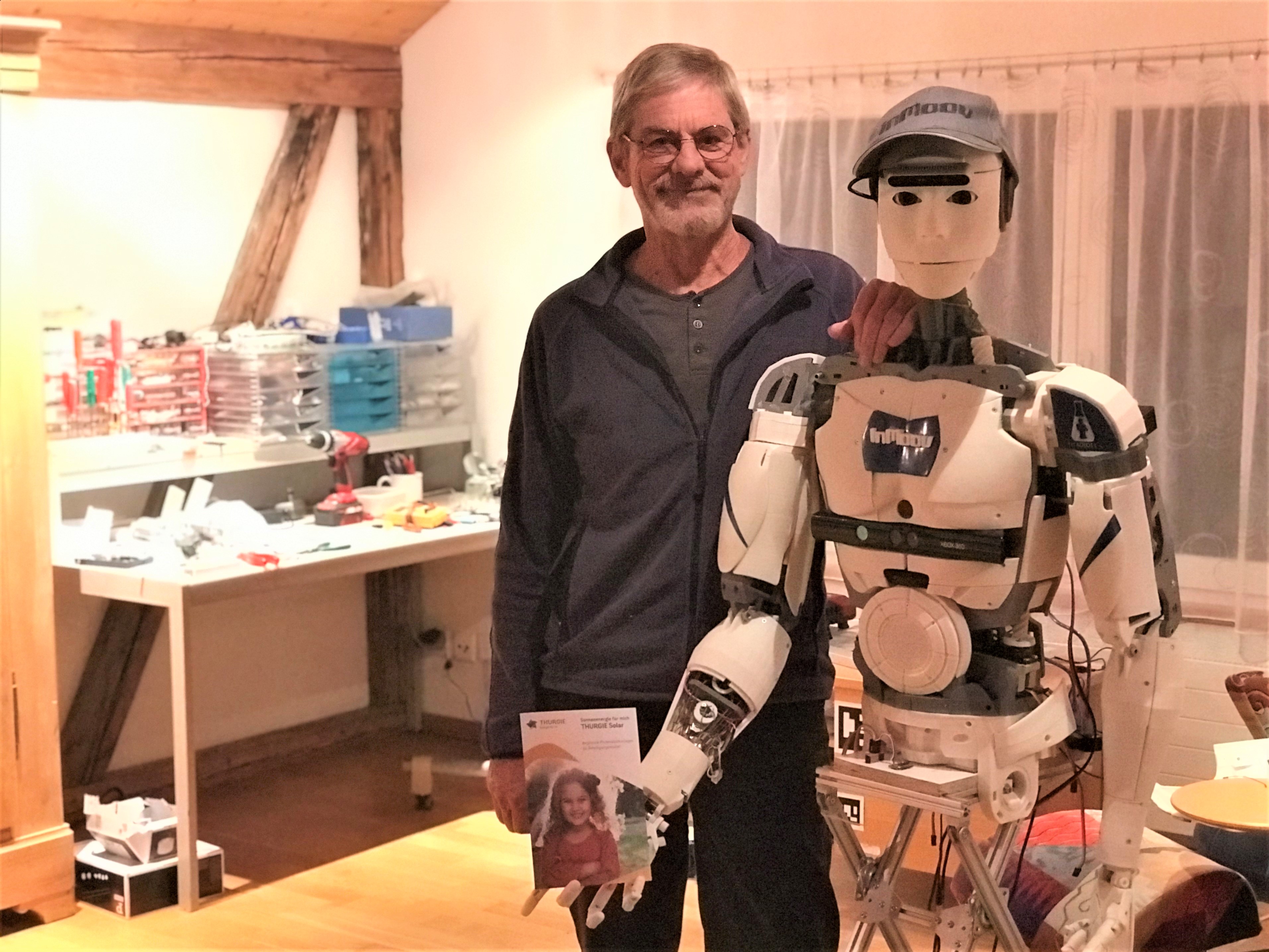 Jürg Maier aus St. Margarethen investiert in die Zukunft mit Sonnenergie. Hier mit seinem Roboter Marvin